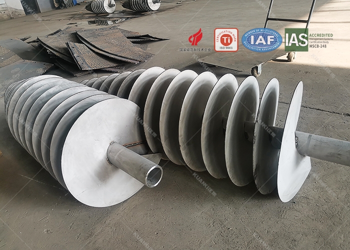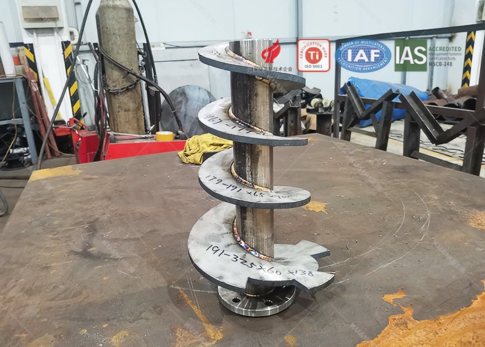 锥形螺旋叶片有实体螺旋面、带式螺旋面和叶片螺旋面三种形式,其中,叶片式螺旋面应用相对较少,主要用于输送粘度较大和可压缩性物料,这种螺悬面型,在完成输送作