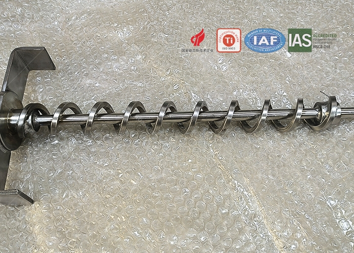 常用材质:Q235、Q355B、45#钢、20#钢、304、316L、310S、2205、410、420、430、Ti1、Ti2、Ti3、Ti4、NM400-NM500、Hardox400-Hardox500等。螺旋轴尺寸:外径50mm-3