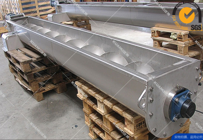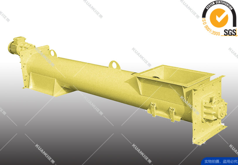 水平螺旋输送机是利用旋转的螺旋将被输送的物料沿固定的机壳内推移而进行输送工作,头部及尾部轴承移至壳体外,吊轴承采用滑动轴承设有防尘密封装置,轴瓦一般采用粉末冶金,输送水泥采用毛毡轴瓦,吊轴和螺旋轴采用滑块连接。